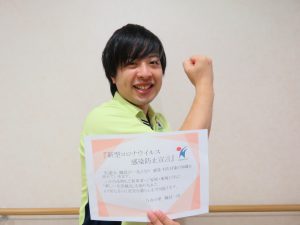 「3K4Kと言われない介護を作ります。後輩職員から現場が楽しいと言われる職場づくりを目指します。自分らしく精一杯頑張ります。」