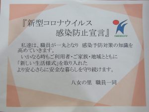 新しい生活様式へ向けて、八女の里では今まで毎朝行ってきた朝礼を中止しています。