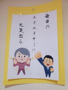 その代わりに、毎朝全館放送にて、本日の予定や誕生者の紹介、新型コロナウイルス感染症に関すること、最後に全員での頑張ろうコール「エイエイオー」などを放送しています。