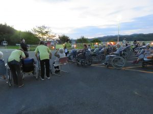 しかし、理事長をはじめ職員間で話し合い、このような状況でも、なにかご利用者様の思い出作りになるようなことができないかと考え、昨日8月28日に「打上花火」を上げようと取り組みました。