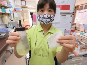 そこで、自分では洗顔できない利用者様に温かいフェンネルティーをコットンに含ませてモーニングケアを行わさせていただきました。