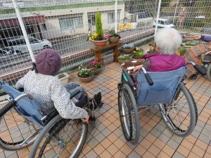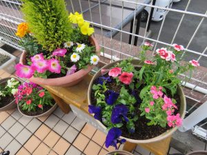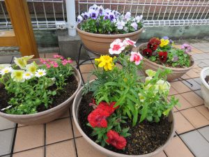 復興の願いをこめて、テラスにたくさんの花を数名のご利用者様と植えました。