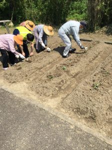 参加者の皆様が作業に慣れてあり、例年より早く苗植えを行うことができました。おかげさまで、体調不良者もおらず、楽しく苗植えを行うことができました。じゃがいものように、さつま芋も大きく成長してくれることを願っています。