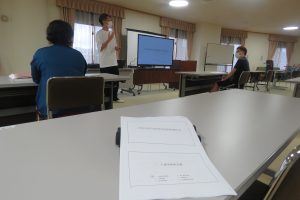 毎回手作りの資料を基に勉強をし、受講生は事前に「[九訂]介護支援専門員基本テキスト」を必ず読んで、用語等を理解しておくことを前提としています。