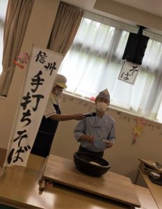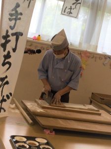 目の前で行われるそば打ちに、ご利用者様も見入っておられました。