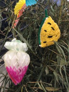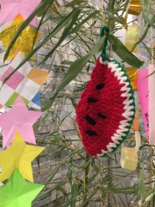 写真の “ スイカ ” はご利用者様より、「笹飾りに使ってください」と手編みのスイカを作って下さいました。