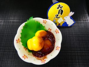 八媛苑では夕食のデザートでお月見団子をお出ししました。
