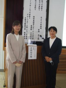 今回、当事業所(ユニット型特別養護老人ホーム ステイン八女の里)は、『 施設での看取り 』についてナースの立場から看護課長が発表の機会を頂きました