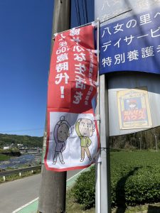今年も、八女市柳島の民生委員さんより依頼があり、のぼりを立てさせていただきました。