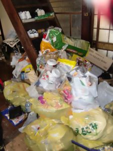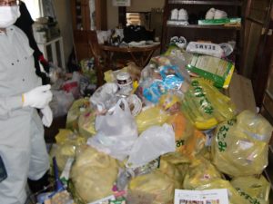 生活ごみや猫のふんなどが溜まっておりましたが、参加者14名全員で行った結果、軽トラック2台分のゴミが搬出することができました。