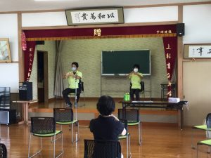 まずは自己紹介後、現在流行している新型コロナウイルス感染症についての話、気候的にも暑くなってきたので熱中症の話をさせていただきました。